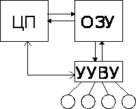 Это процессорный элемент, т.е. устройство, которое перерабатывает информацию, это оперативная память (Оперативное Запоминающее Устройство, ОЗУ), и устройства управления внешними устройствами (УУВУ). Мы определили основное качество оперативное памяти: именно в оперативной памяти лежит исполняемая в данный момент программа, и процессор все последующие команды исполняемой программы берет из оперативной памяти. Если чего-то не хватает, идет запрос к внешним устройству, информация подкачивается в оперативноую память, и опять-таки из оперативной памяти команды поступают в процессор на обработку.