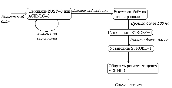 На рисунке 1.6 показана диаграмма процесса передачи информации. Передача ведется по одному байту без контроля ошибок.