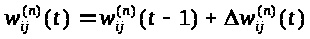 1. Подать на входы сети один из возможных образов и в режиме обычного функционирования НС, когда сигналы распространяются от входов к выходам, рассчитать значения последних. Ниже представлена формула расчёта взвешенной суммы весов: