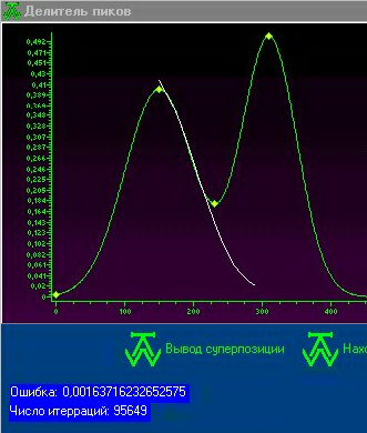 2.) Подать на дополнительный вход разность между значением суперпозиции в этой точке и полученным значением в этой точке у соседнего пика.
