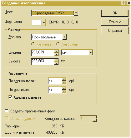 Рис. 2. Диалоговое окно Create a New Image (Создание изображения)