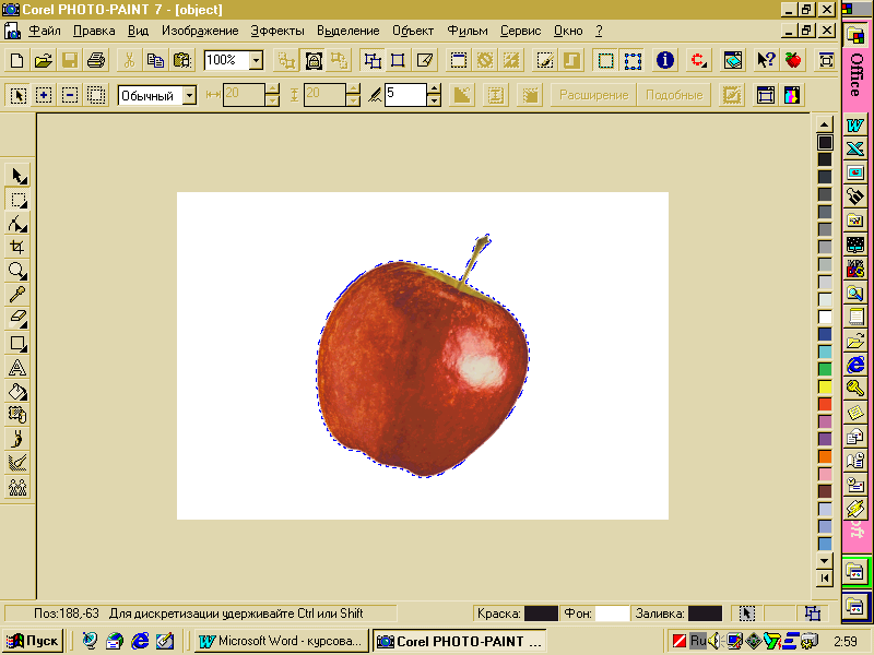 1. Закройте документ APPLE. PCX и откройте изображение APPLEOBJ.PCX, которое вы ранее создали как объект, отделив яблоко от листа. Изображение должно выглядеть примерно, как рис. 16.13.