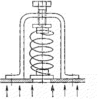 где Dн.п., Dп.п., D — пропускная способность клапана, кг/ч: α — коэффициент расхода пара (жидкости) клапаном, определяется проектной организацией (заводом-изготовителем) экспериментально для каждой конструкции клапана и записывается в паспорт; P>1>— максимальное избыточное давление перед предохранительным клапаном, МПа Vн.п., Vп.п. V - удельный объем пара перед предохранительным клапаном, м3/кг; F — площадь сечения клапана, равная наименьшей площади сечения в проточной части, мм. Различают пружинные и рычажные предохранительные клапаны (рис. 3.3.1-3.3.2.).