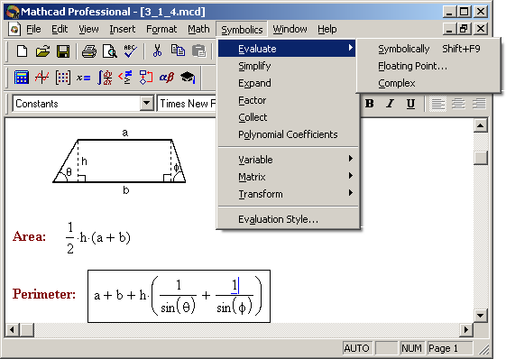 ВЫЧИСЛЕНИЯ В MATHCAD 8