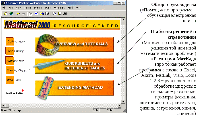 MathCad 2000 содержит очень много справочных и иных вспомогательных материалов.