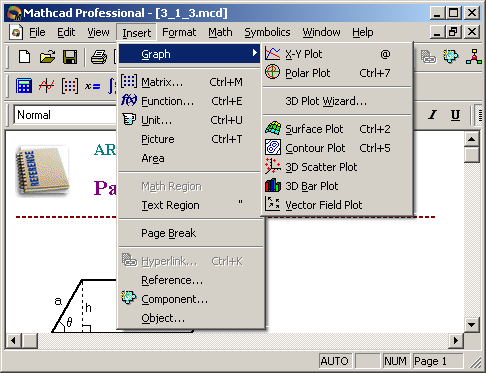 Graph – позволяет вставлять в документ графики в 2-х, 3-х, и полярной системах координат