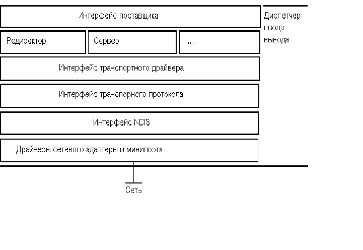 Inerface Specification ) версии 3.0 .NDIS предоставляет гибкую среду обмена данными между транспортными протоколами и сетевыми адаптерами .NDIS 3.0 позволяет отдельному компьютеру иметь несколько установленных в нём