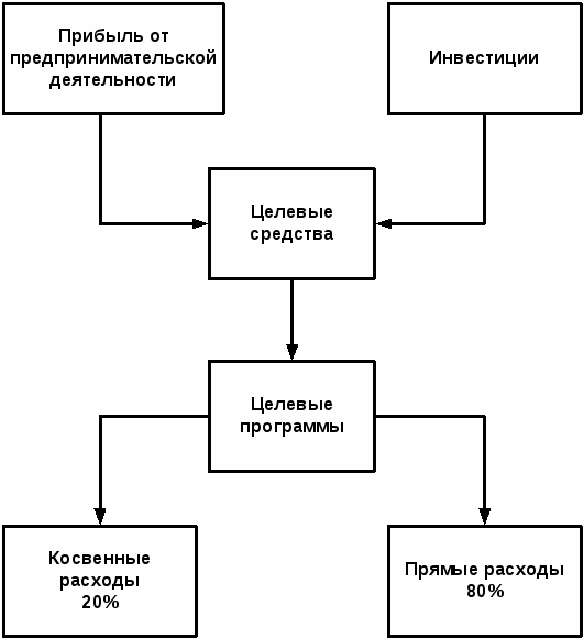 Основными законами, которыми РООИ «СОРАТНИК» руководствуется в своей деятельности являются Федеральный Закон N 7-ФЗ «О некоммерческих организациях» от 12 января 1996 г. и Закон города Москвы N 35 от 29 ноября 2000г. "О ставках и льготах по налогу на прибыль". Эти два закона определяют схему движения финансовых потоков при осуществлении ее основной уставной непредпринимательской деятельности, которая показана на плакате 2.