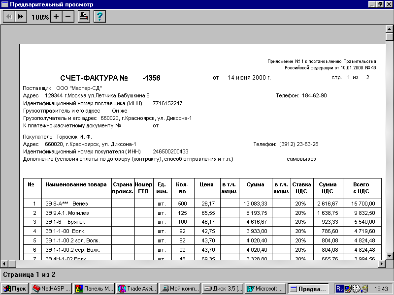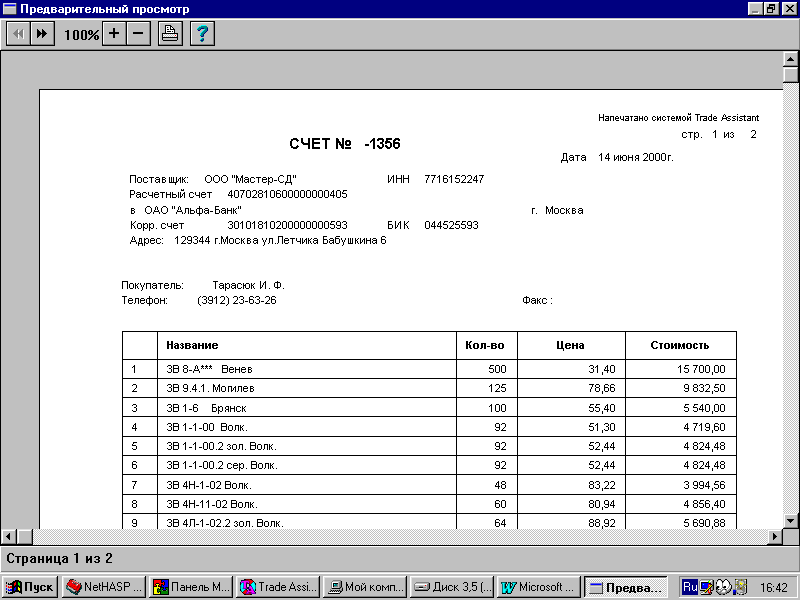 Для того, чтобы осуществился перенос данных (в данном случае накладных) из ”TRADE ASSISTANT” в “Инфо-бухгалтер” ООО”Мастер-СД” необходимо закупить кабель для подсоединения компьютеров бухгалтерии к ЛВС и разработать специальный программный модуль, обеспечивающий их перенос.