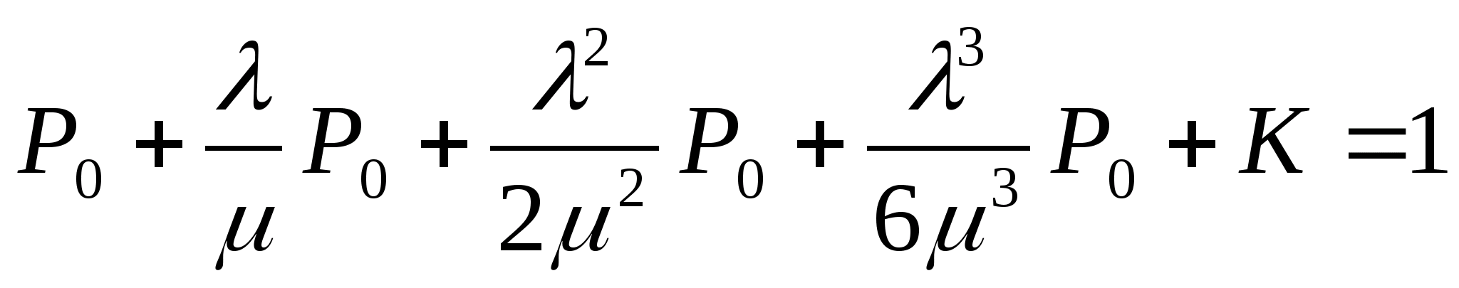 3 Одноканальная система массового обслуживания с накопителем, многоканальная система массового обслуживания с накопителем. Рассмотрим общую схему системы массового обслуживания для разомкнутых смешанных систем. Она состоит из обслуживающей и обслуживаемой систем. Обслуживаемая система включает совокупность источников требований и водящего потока требований. Требование -каждый отдельный запрос на выполнение какой-либо работы (на производство услуги). Источник требования - объект (человек, механизм и т.д.), который может послать в обслуживающую систему одновременно только одно требование Обслуживающая система состоит из накопителя и механизма обслуживания. Обслуживанием считается удовлетворение поступившего запроса на выполнение услуги. Механизм обслуживания состоит из нескольких обслуживаюших аппаратов. Обслуживающий аппарат - это часть механизма обслуживания. которая способна удовлетворить одновременно только одно требование (ремонтный рабочий или бригада, кран, экскаватор, пост мойки и т.д.). После окончания обслуживания требования покидают систему, образуя выходящей поток требований. Для моделирования СМОРС должны быть известны четыре ее параметра λ - плотность входящего потока, показывающая среднее число требований, поступающих в СМО в час (параметр загрузки). Поток заявок простейший. μ -среднее число заявок обслуживаемых одним аппаратом в час (параметр разгрузки). Распределение интервалов обслуживания подчиняется показательному распределению N - чисто обслуживающих аппаратов. Будем полагать, что аппараты имеют одинаковую производительность обслуживания μ требований/час. М - максимальное число требований, которое может быть размещено в накопителе при ожидании обслуживания. Будем считать, что если очередное требований поступающее в СМО в состоянии, когда буду т заняты все аппараты и все места в накопителе то требовании получает отказ в обслуживании и покидает систему массового обслуживания не обслуженным. В системе массового обслуживания постоянно протекают два случайные процесса: - процесс загрузки обуотовтенный параметром λ - процесс разгрузки обуотовтенный параметром μ В результате чего СМО меняет свои состояния Для расчета вероятностей состояний используется формула связывающая вероятности двух соседних состояний из графа состояний по следующему правилу: вероятность Р>i>> >равна вероятности предыдущего состояния Р>i>>-1 >умноженной на отношение показателя загрузки к показателю разгрузки S>i>>-1> состояния. Все вероятности связаны между собой, поэтому выразим их через Ро