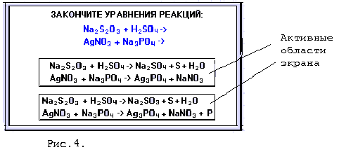 Для проверки изученного материала на экране монитора высвечивается кадр (картинка), где представлен вопрос и варианты предлагаемых ответов, подготовленные в модуле Writer. Варианты ответов обведены в специальные прямоугольники (или любые другие геометрические фигуры), которые при составлении сценария были обозначены (заявлены) активными областями экрана. Поэтому при ответе на поставленный вопрос ученику будет достаточно подвести курсор “мышки” к прямоугольнику с правильным ответом и щелкнуть левой клавишей мышки. Если ответ “верен”, то машина выводит соответствующий комментарий, созданный в модуле Writer, и переходит к следующему этапу в соответствии с написанным сценарием, в противном случае она дает возможность повторить слабо усвоенный раздел и исправить допущенную ошибку.