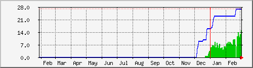 По годовому графику можно отметить спад с сентября по январь 1999 года, видимо это связано с начавшимся финансовым кризисом; он повлиял на рост не только $, но и благосостояния людей. После принятия нового бюджета госсударства, и уйдя от неопределённости порожденной кризисом, люди, оценивая свой бюджет, заново подключают Internet.