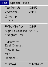Для форматирования вида самого текста используется меню Text. Ниже дано описание его пунктов.