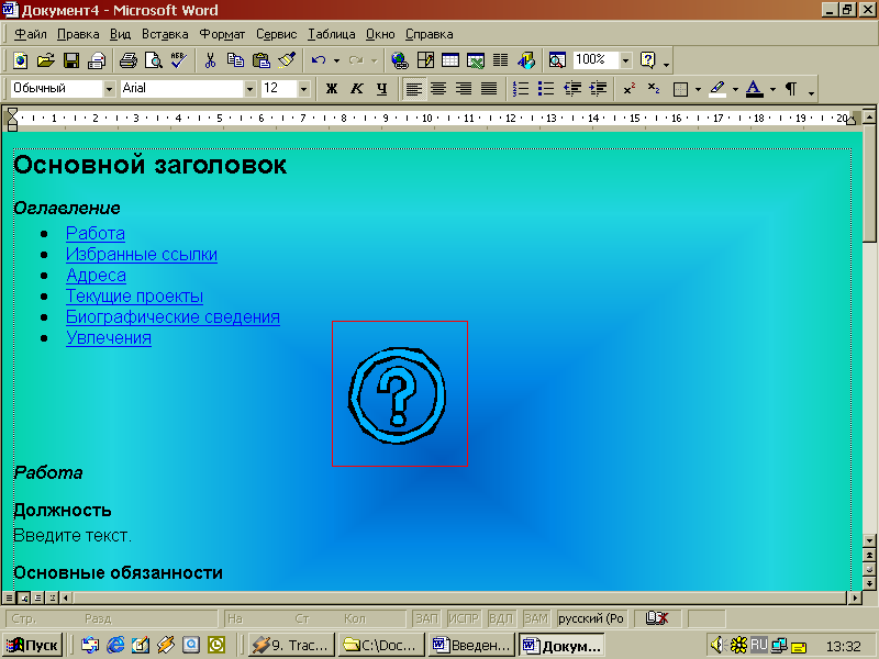 На многих Web-страницах рисунки используются в качестве гиперссылок на другие страницы и документы. Word позволяет создавать графические гиперссылки и включать их в Web-страницы.