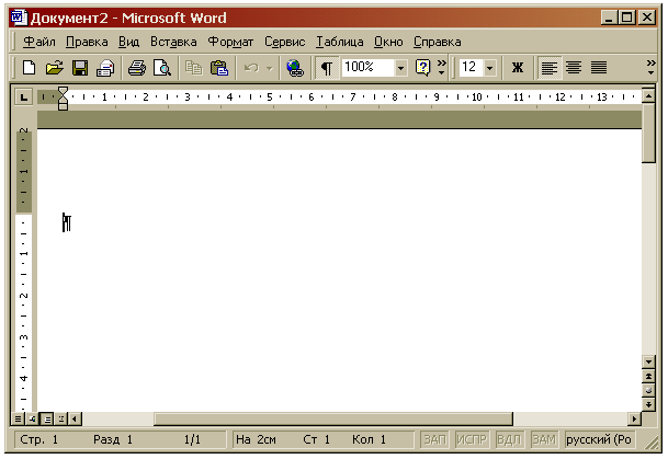 Окно процессора Word. Общий вид окна приложения MS Word (совместно с окном документа) содержит все стандартные элементы, рассмотренные выше.