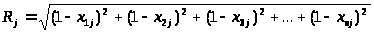 Для каждого предприятия итоговая оценка находится по формуле расстояний в n мерном пространстве.