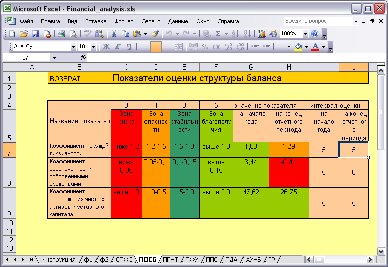 Приложение 9. «Программа «Excel Financial Analisys» в работе»