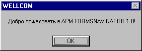 При открытии базы данных "АРМ FORMSNAVIGATOR 1.0" сначала на экран выводится приглашение к работе и затем открывается основное окно навигатора.
