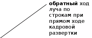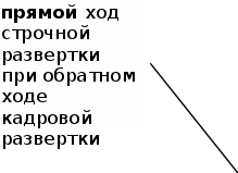 Направление движения луча во время прямого хода строчной развертки принято слева направо, кадровой развертки - сверху вниз.