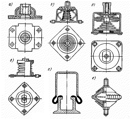 б – пружинно-резиновый типа АД с пневмодемпфированием;