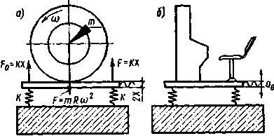 Рис. Установка агрегатов на виброгасящие основания: а – на фундаменте и на грунте; б – на перекрытии.