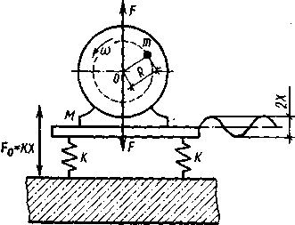 Динамические гасители вибрации наиболее эффективно применяются для уменьшения вибрации машин со стабильной частотой колебаний (насосов, турбогенераторов, силовых установок и т.д.). Работа виброгасителя сводится к следующему (рис.2.5.20). Виброгаситель массой m и жесткостью К! присоединяется к вибрирующему механизму, колебания которого необходимо погасить (масса механизма М и жесткость К). Колебания механизма под действием возмущающей силы происходят по гармоническому закону F>0> * sin ωt . Массу и жесткость виброгасителя m и К! подбирают таким образом, чтобы частота собственных колебаний виброгасителя была равна ω = ω>0 >. При этом, в каждый момент времени сила F1 от виброгасителя действует против силы F (виброгаситель входит в резонансные колебания, а колебания механизма массой М уменьшаются). Виброгашение применяется для снижения колебаний высотных объектов (теле- и радиоантенны, дымовые трубы, памятники). Частота собственных колебаний виброгасителей подбирается таким образом, чтобы она совпадала с частотой пульсации ветровой нагрузки. Недостатком применения динамических гасителей является то, что они позволяют снизить вибрацию только на одной частоте(2.5.23).