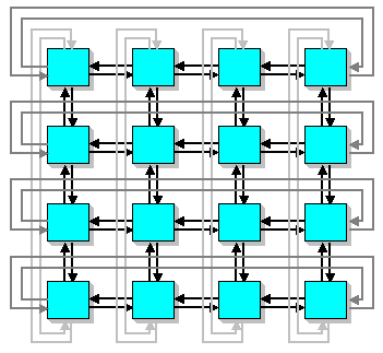 MIMD архитектуры с распределенной памятью можно так же классифицировать по пропускной способности коммутирующей сети. Например, в архитектуре, в которой пары из процессора и модуля памяти (процессорный элемент) соединены сетью с топологий реш§тка, каждый процессор имеет одно и то же число подключений к сети вне зависимости от числа процессоров компьютера. Общая пропускная способность такой сети растет линейно относительно числа процессоров. С другой стороны в архитектуре, имеющей сеть с топологий гиперкуб, число соединений процессора с сетью является логарифмической функцией от числа процессоров, а пропускная способность сети растет быстрее, чем линейно по отношению к числу процессоров. В топологии клика каждый процессор должен быть соединен со всеми другими процессорами.