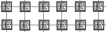 локальную память (прямой доступ к памяти других узлов невозможен)