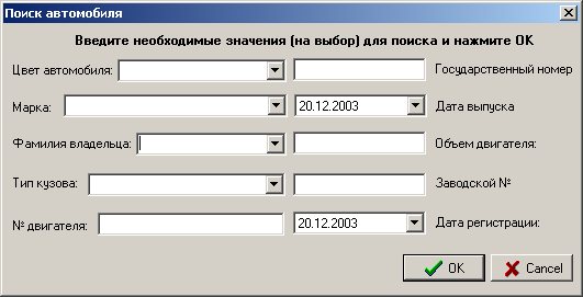 Основным справочником является справочник «Автомобили» (рис.6), здесь сосредоточены данные обо всех автомобилях и их владельцах зарегистрированных в базе данных.