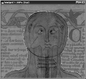 Рис. 9.32. Голова персонажа, выделенная обтравочным контуром в программе PageMaker