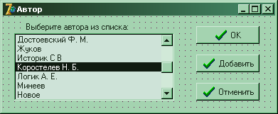 Эта форма появляется на экране либо при нажатии на кнопке «Авторы» в меню главной формы, либо при нажатии на кнопке «Добавить» в форме, описанной выше.