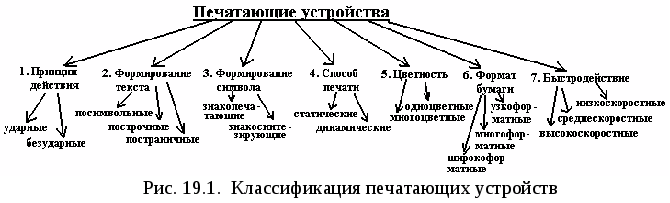 Все печатающие устройства принято классифицировать по семи основным признакам (рис. 19.1):