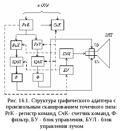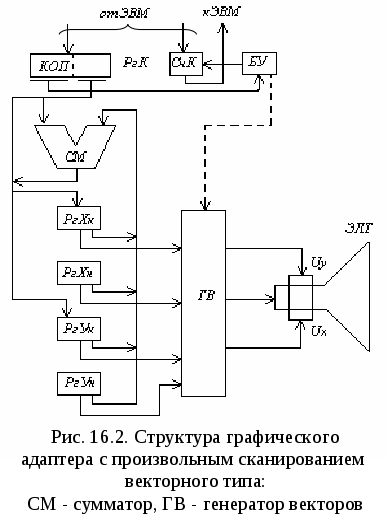 Матричные печатающие устройства оснащаются загружаемыми из ПЭВМ знакогенераторами, куда пользователь может записать необходимые ему знаки. При этом обеспечивается прямая адресация к ударным элементам печатающей головки. Если матричные устройства знакосинтезирующего типа, то они могут выводить и графическую информацию. Поэлементные описания графических изображений хранятся в ОЗУ блока управления печатью.