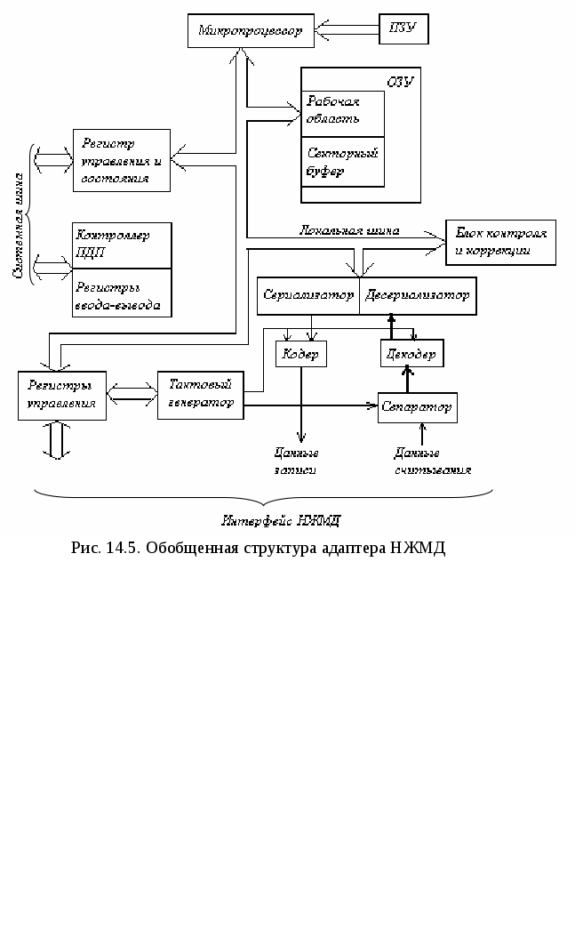 Контроллеры ВЗУ, как правило, размещаются в системном блоке ПЭВМ и реализуют функции контроля исправности ВЗУ, помехоустойчивого кодирования, обнаружения ошибок при считывании, задания формата данных, формирования сигналов интерфейса в соответствии с протоколом и др.