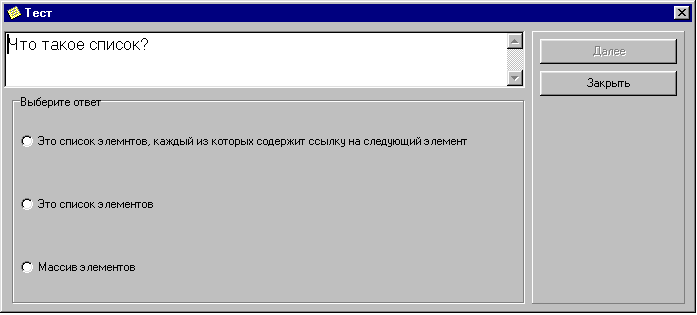 Memo1.Lines.Add('Если элемент содержит ссылки на следующий и предыдущий элемент, то это ...');
