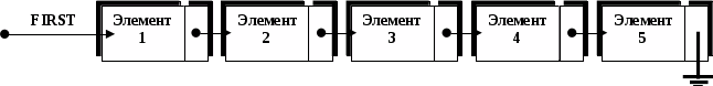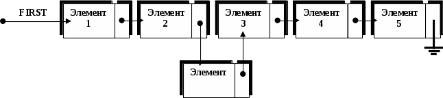 Список с использованием указателей (linked list) – список, в котором каждый элемент содержит указатель на следующий элемент списка.