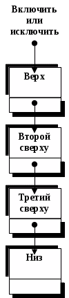 При описании алгоритмов, использующих такие структуры, принята специальная терминология; так, мы помещаем элемент на верх стека или снимаем верхний элемент. Внизу стека находится наименее доступный элемент, и он не удаляется до тех пор, пока не будут исключены все другие элементы. Часто говорят, что элемент опускается (push down) в стек или что стек поднимается (pop up), если исключается верхний элемент. Эта терминология берет свое начало от "стеков" закусок, которые можно встретить в кафетериях, или по аналогии с колодами карт в некоторых перфораторных устройствах. Краткость слов "опустить" и "поднять" имеет свое преимущество, но эти термины ошибочно предполагают движение всего списка в памяти машины. Физически, однако, ничего не опускается; элементы просто добавляются сверху, как при стоговании сена или при укладке кипы коробок. В применении к очередям мы говорим о начале и конце очереди; объекты встают в конец очереди и удаляются в момент, когда наконец достигают ее начала. Говоря о деках, мы указываем левый и правый концы. Понятие верха, низа, начала и конца применимо иногда и к декам, если они используются как стеки или очереди. Не существует, однако, каких-либо стандартных соглашений относительно того, где должен быть верх, начало и конец: слева или справа. Таким образом, мы находим, что в наших алгоритмах применимо богатое разнообразие описательных слов: "сверху — вниз" — для стеков, "слева — направо" — для деков и "ожидание в очереди" — для очередей.