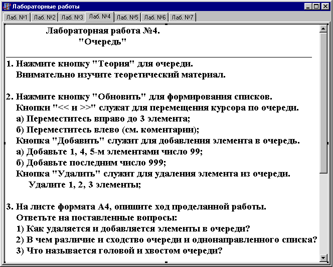 Memo1.Lines.Add('Откуда считывается элемент из очереди?');