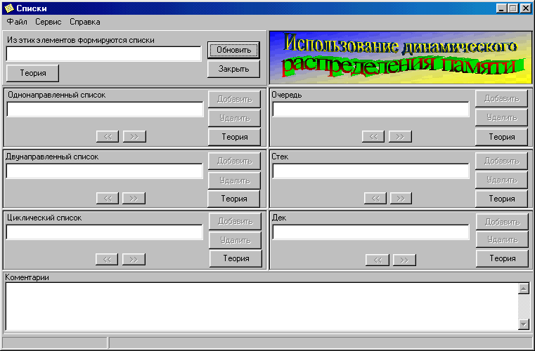 Предмет исследования: Изучение динамических информационных структур.