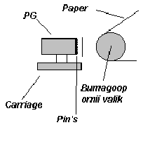 Для перемещения красящей ленты используется передаточный механизм, использующий движение каретки. За перемещение каретки отвечает шаговой двигатель. Еще один шаговой двигатель отвечает за перемещение бумагоопорного валика. Скорость печати матричных принтеров невысока. В зависимости от выбранного качества печати и модели принтера скорость печати составляет от 10 до 60 секунд на страницу.