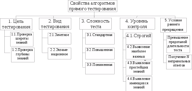 Рис. 1 – Свойства алгоритмов прямого тестирования