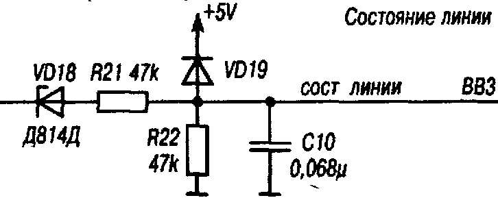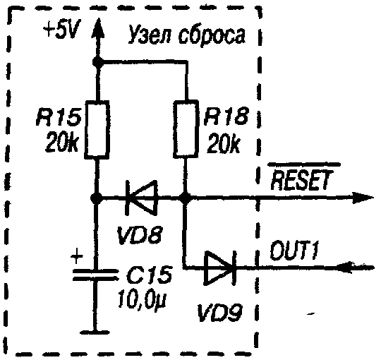 Реализована на элементах С14, R27, VD23, VD24, R28, ВВ5 порта ввода-вывода D6 (рис.3.25).