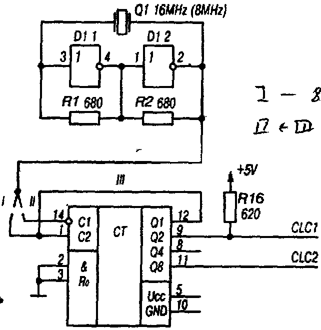 Обеспечивает тактовыми сигналами ЦП (4MHz) и работу таймера (1 MHz).