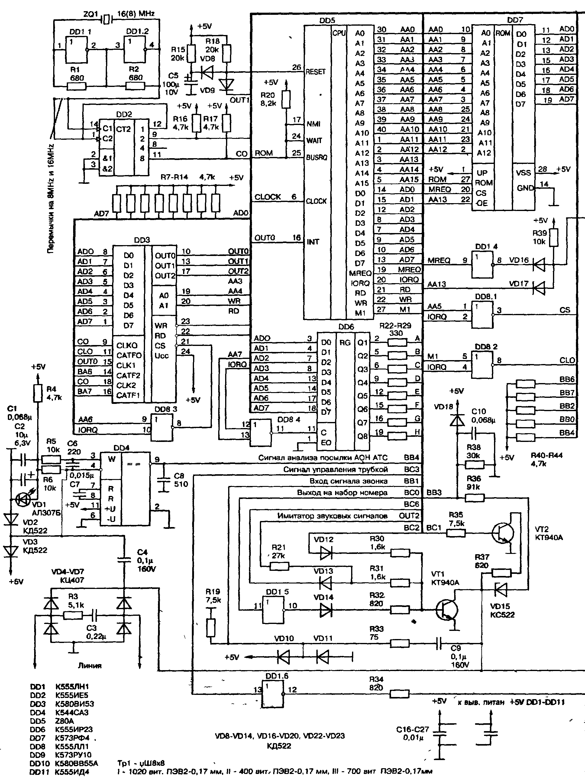 Использование процессора Z80 позволило упростить схемное решение благодаря целому ряду положительных качеств. А именно: