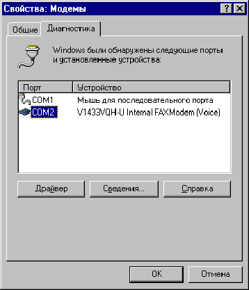 6.1.2 Диагностика модема посредством ОС Windows 9х...................