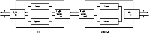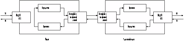 Этот тест как и тест с использованием местного цифрового шлейфа, проверяет качество обоих модемов и телефонного канала. Направление потока данных приведено на рисунке 15.