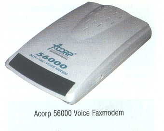 2.3.2Acrop 56000 Voice Faxmodem. Модем поддерживает протокол V.90. Из названия видно, что это факс-модем, голосовой. Имеет гнездо для подключения телефона, так что не придется устанавливать дополнительную розетку. Установка и настройка не вызывает проблем, так как поддерживается технология Plug-and-Play. Использует микропроцессорный набор Rockwell, что позволит подобрать оптимальную прошивку. Что касается скорости. Скорость 56Кбит/с достижима на редких российских сетях. Реальная скорость, полученная при тестировании данного модема 3,3-3,6 Кбайт/с, что считается довольно приличным результатом для российских сетей. (3)