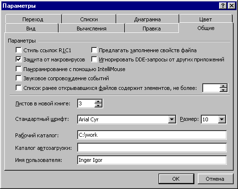 1.Выберите команду Параметры в меню Сервис, а затем — вкладку Общие.
