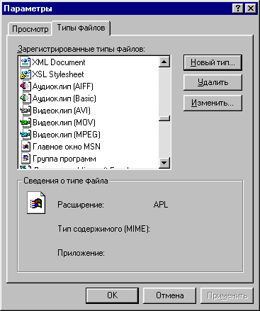 Примечание. Не все зарегистрированные типы файлов имеют действие Open.