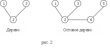 Связная сеть – такая сеть, у которой любые два узла связаны по крайней мере одним путем. На рис. 1 показан именно такой тип сети и не имеющий циклов. Остовное дерево – это дерево, содержащая все узлы сети. На рис. 2 показаны дерево и Остовное дерево для сети из рис. 1.